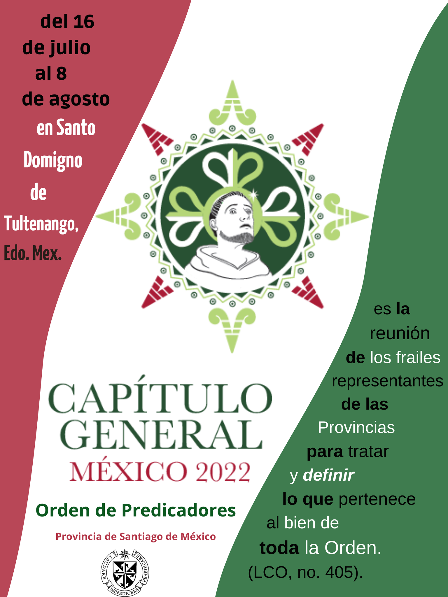 Del 16 de julio al 8 de agosto de 2022, la Orden de Predicadores celebrará su Capítulo General de Definidores en nuestro país, México, en nuestra casa Santo Domingo de Tultenango, Edo. Mex.